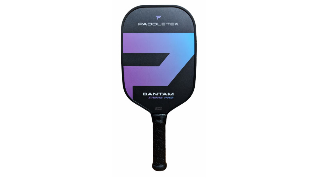 PADDLETEK Bantam Sabre Pro Small Grip Purple Auroraは、ロングハンドルとスモールグリップで操作性を高めやすく、精度重視のプレーを支える中上級者向けモデルです。