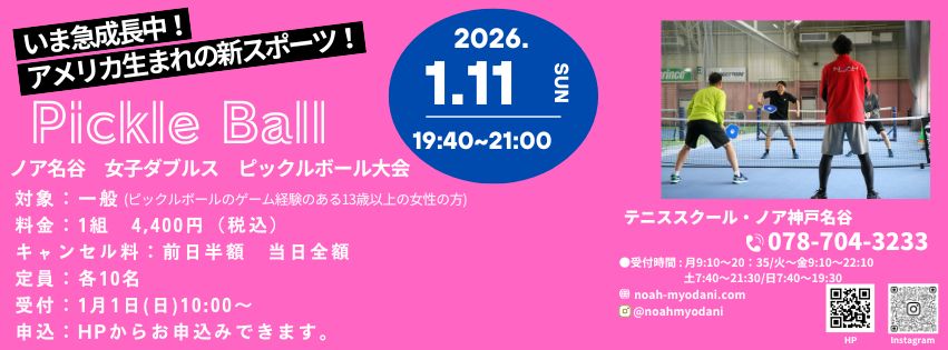 イベント名 第3回 ノア神戸名谷 女子ダブルスピックルボール大会