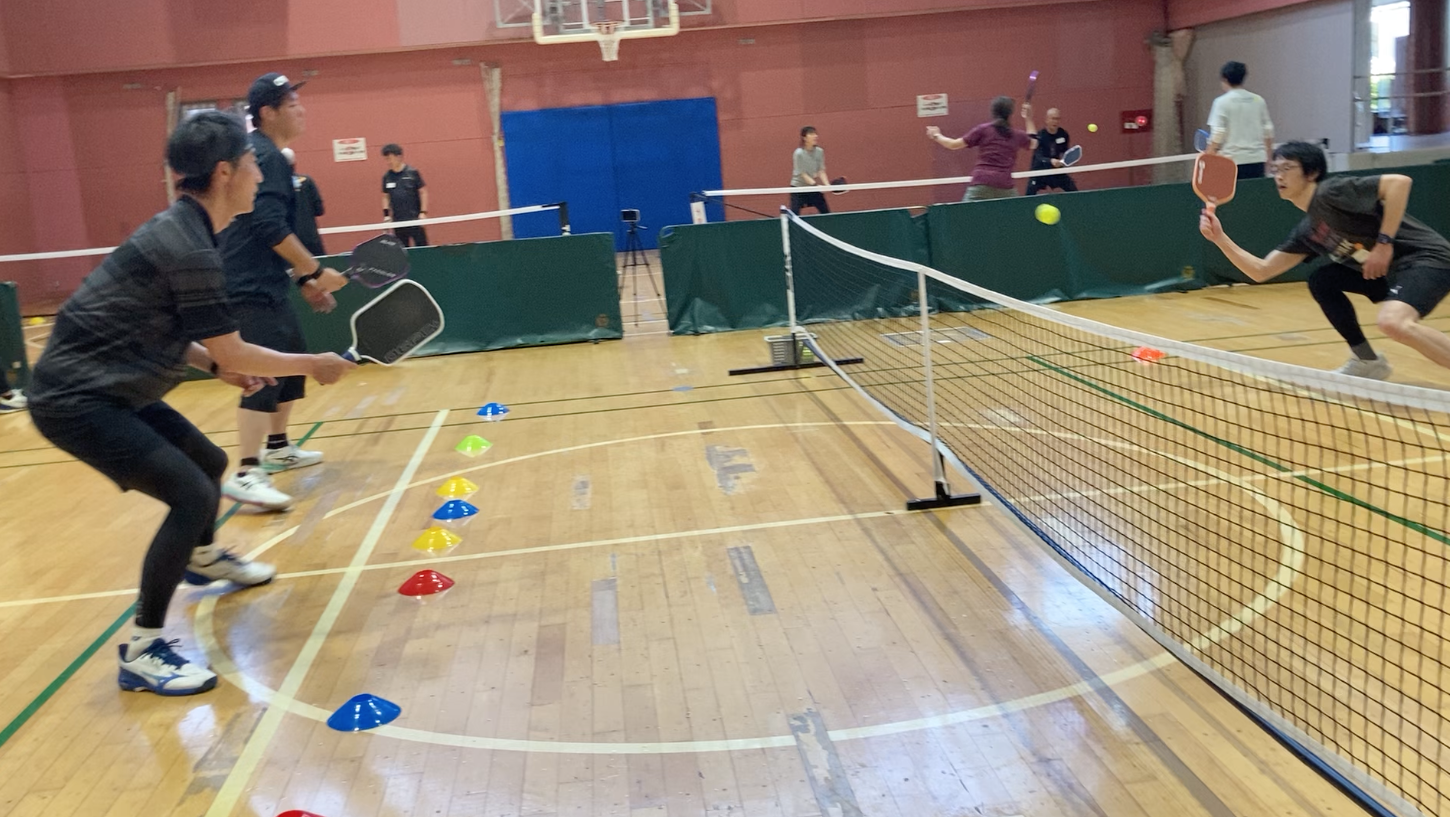 試合で“なんとなく打つ”から、 目的を持って、ペアで勝ちにいくへ。 前回開催(4/12)した「ダブルブレイン戦術セッション」では、 午前の座学と午後のオンコート実践を通じて、 「試合中に何を考え、どう判断するか」を学ぶ時間となりました。 今回はその内容をさらに発展させ、 2 日間でより実践量を増やし、ペアとしての戦術理解・判断・連携を磨く集中プログラムとして開催 します。 単なるショット練習ではなく、サーブ、リターン、3rd、4th、5th、ディンク戦、スピードアップ、カウンタ ー、ポジショニング、スタッキングのペア連携まで、試合の流れを「目的」と「手段」に分解しながら、 実戦で使える形に落とし込んでいきます。 【開催概要】 ■日程 2026 年 5 月 16 日(土)10:00〜18:30 17 日(日)10:00〜17:00 ■会場 BumB 東京スポーツ文化館 研修ルーム C サブアリーナ(フルコート 2 面+ハーフコート 2 面) https://www.ys-tokyobay.co.jp/ ■定員 16 名 ※ペア参加・2 日間通し参加を優先します。 ■対象レベル 大会出場経験のある初中級〜中上級プレーヤー 目安:DUPR 3.0〜3.8 前後 ※明確な DUPR がなくても、試合経験があり、戦術理解を深めたい方は参加可能です。 ■講師 堀井大輔 Pickleball X サポートコーチ Pickle Campus 特任教授 https://www.instagram.com/daisuke_pickleball/ +アシスタント 1 名 ■主催 PickleBASE 【この講座で目指すこと】 この 2 日間で目指すのは、 “うまく打つ”ことだけではなく、“なぜその選択をするのか”を理解して動けるようになることです。 特に以下のような方におすすめです。 • 試合中、何を考えて組み立てればいいかわからない • 3rd〜5th の展開が安定しない • ディンク戦からどう展開すればいいかわからない • スピードアップをいつ打つべきか迷う • カウンターやリセットで崩れてしまう • ペアとの役割分担やポジショニングを整理したい • スタッキングについて理解したい • 固定ペアで一段レベルアップしたい • 戦術を体系的に学びたい この 2 日間で、 ・3rd〜5th の展開が崩れない“型” ・ディンクからの展開パターン ・スピードアップの判断基準 ・ペアとしての役割と動き方 を「理解」だけでなく「再現できる状態」まで引き上げます。 【扱う予定テーマ】 • 戦略の基本:目的+手段 • サーブ側のゲーム設計 • リターン側のゲーム設計 • 3rd shot / 4th shot / 5th shot • キッチンラインへの前進 • ディンク戦の目的と展開 • スピードアップの判断基準 • カウンターとリセット • ポジショニング • ペアの役割分担 • センター処理 • スタッキングの基本と使いどころ • 試合映像を使った戦術理解 • 実戦形式でのフィードバック ※参加者のレベルや課題に応じて、内容は一部調整します。 【プログラム内容】 DAY1|試合の構造を理解し、基本戦術を実践する日 午前は座学で、試合の全体構造を整理します。 テーマは「目的+手段」。 サーブ側、リターン側、それぞれが何を目的にプレーし、 そのためにどのショット・ポジション・判断を選ぶのかを、試合映像も使いながら解説します。 午後はオンコートで、午前に学んだ内容を実際に試します。 3rd〜5th の展開、前進のタイミング、4th 対応、ディンク戦への入り方など、試合で頻出する局面 を中心に反復します。 夕方は実践試合形式。 ただゲームをするのではなく、目的を設定したうえでプレーし、講師からフィードバックを受けます。 DAY2|ペア連携・判断・ゲーム設計を定着させる日 2 日目は、前日の理解をさらに深め、より実戦に近い形で定着させていきます。 午前は、ディンク戦、スピードアップ、カウンター、リセット、ポジショニング、ペアの役割分担などを整理。 必要に応じてスタッキングや左右の役割、左利きペアへの対応なども扱います。 午後はゲーム形式を中心に、ペアごとの課題を確認しながら実践。 「どこで崩れているのか」 「どの展開を増やすべきか」 「ペアとしての共通ルールをどう作るか」 を明確にしていきます。 2 日間を通して、適正人数(16 名)でフィードバック時間を確保した集中講座となります。 同レベル帯の方で構成するため、安心してご参加いただけます。 【タイムスケジュール】 5 月 16 日(土) 9:30受付開始 10:00〜12:30 午前|戦術理解セッション 会場:研修ルーム C 12:30〜13:45 昼食@1F レストラン ランチバイキング 14:00〜16:30 午後|オンコート実践 会場:サブアリーナ 16:30〜18:30 実践試合・フィードバック 会場:サブアリーナ 5 月 17 日(日) 10:00〜12:30 午前|戦術理解セッション 会場:研修ルーム C 12:30〜13:45 昼食@1F レストラン ランチバイキング 14:00〜17:00 午後|オンコート実践・ゲーム形式 会場:サブアリーナ 17:00 現地解散 ※両日とも夕食は各自となります 【参加費】 ① 2 日間・ペア参加 66,000 円(税込)/1 ペア ※1 名あたり 33,000 円(税込) ※但し、ペアのうち 1 名は必ず両日参加が前提です ※原則 2 名とも 2 日間参加となりますが、やむを得ない場合のみ個別にご相談ください ② 2 日間・1 名参加 36,000 円(税込)/