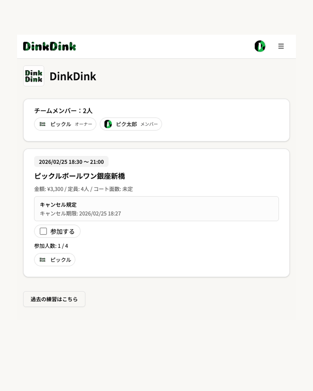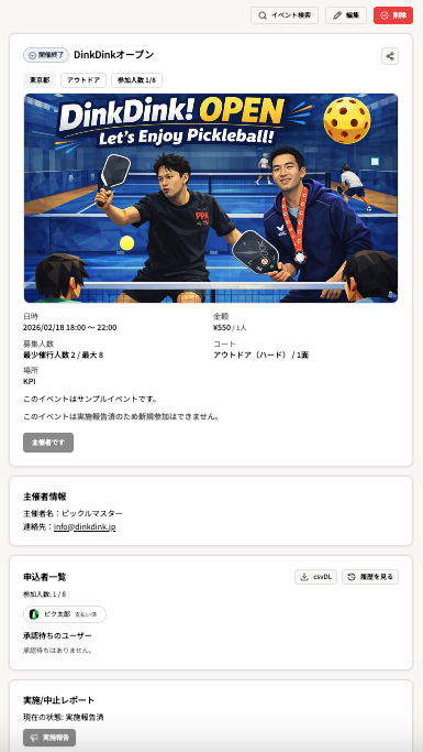 「DinkDink」は、ピックルボールのイベントや練習会の運営をサポートすることを目的に開発されたサービスだ。