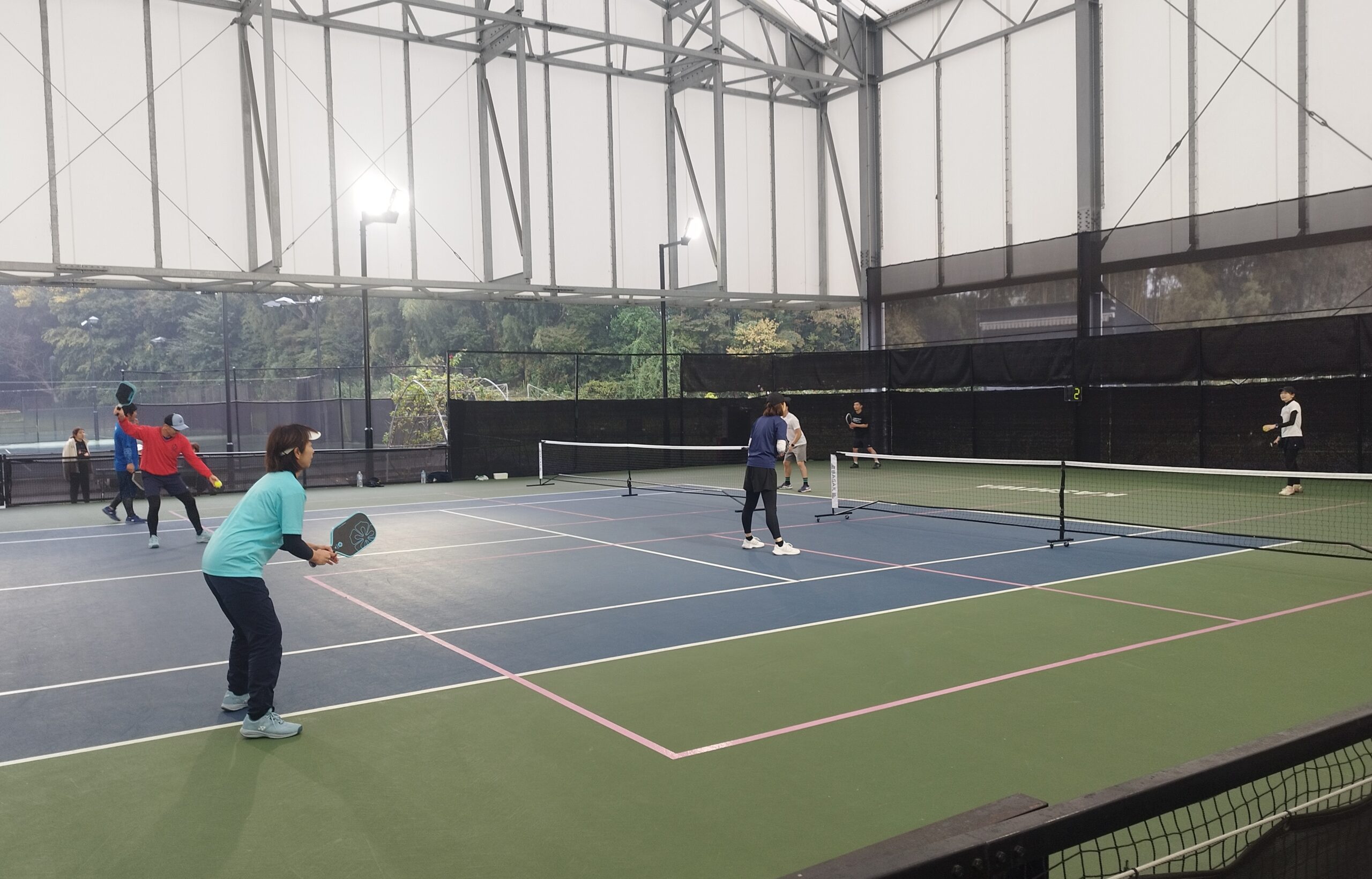 屋根付きインドアコートで楽しく試合をしましょう