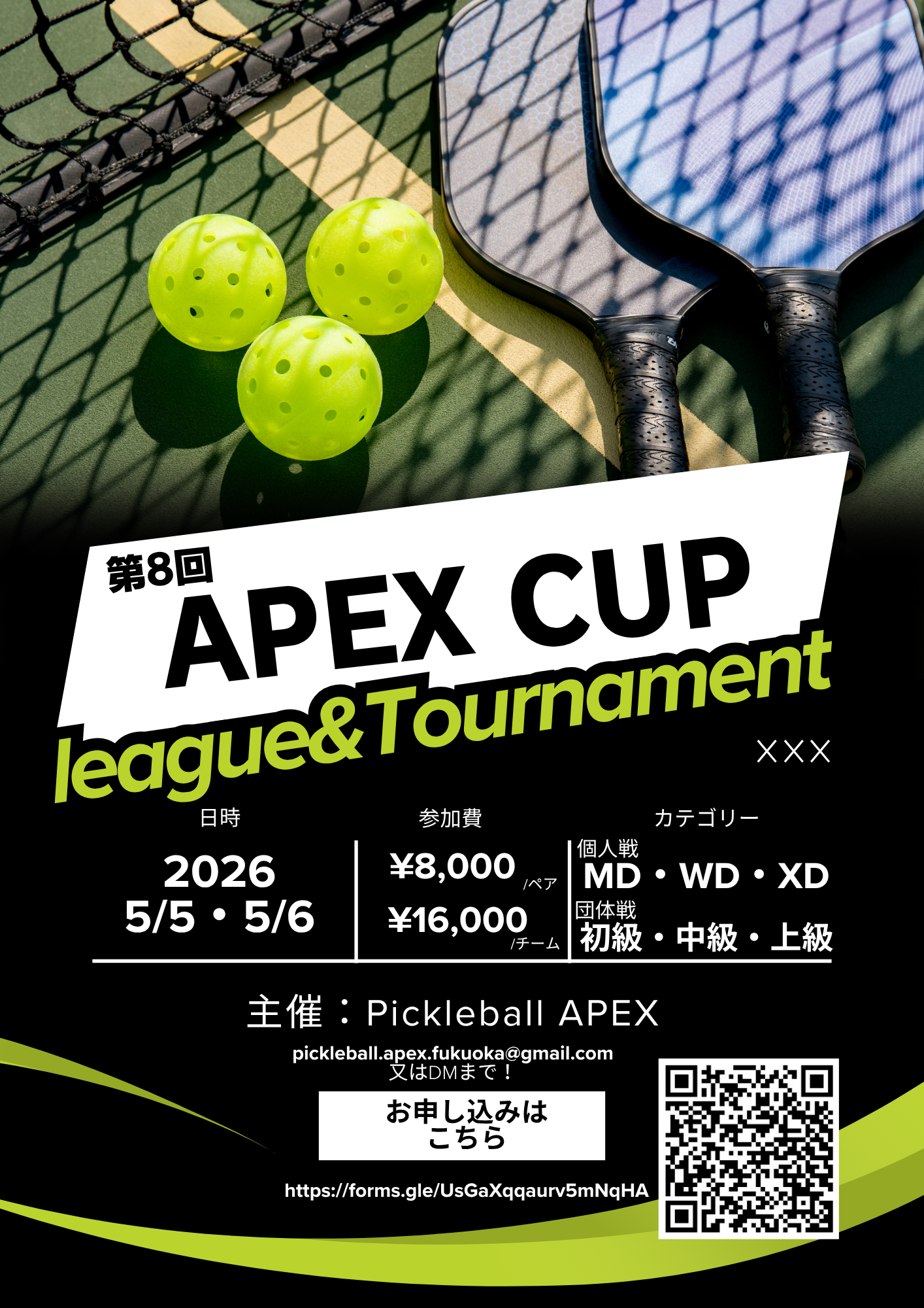 | 大会名 | 第8回Pickleball APEX CUP in Fukuoka |