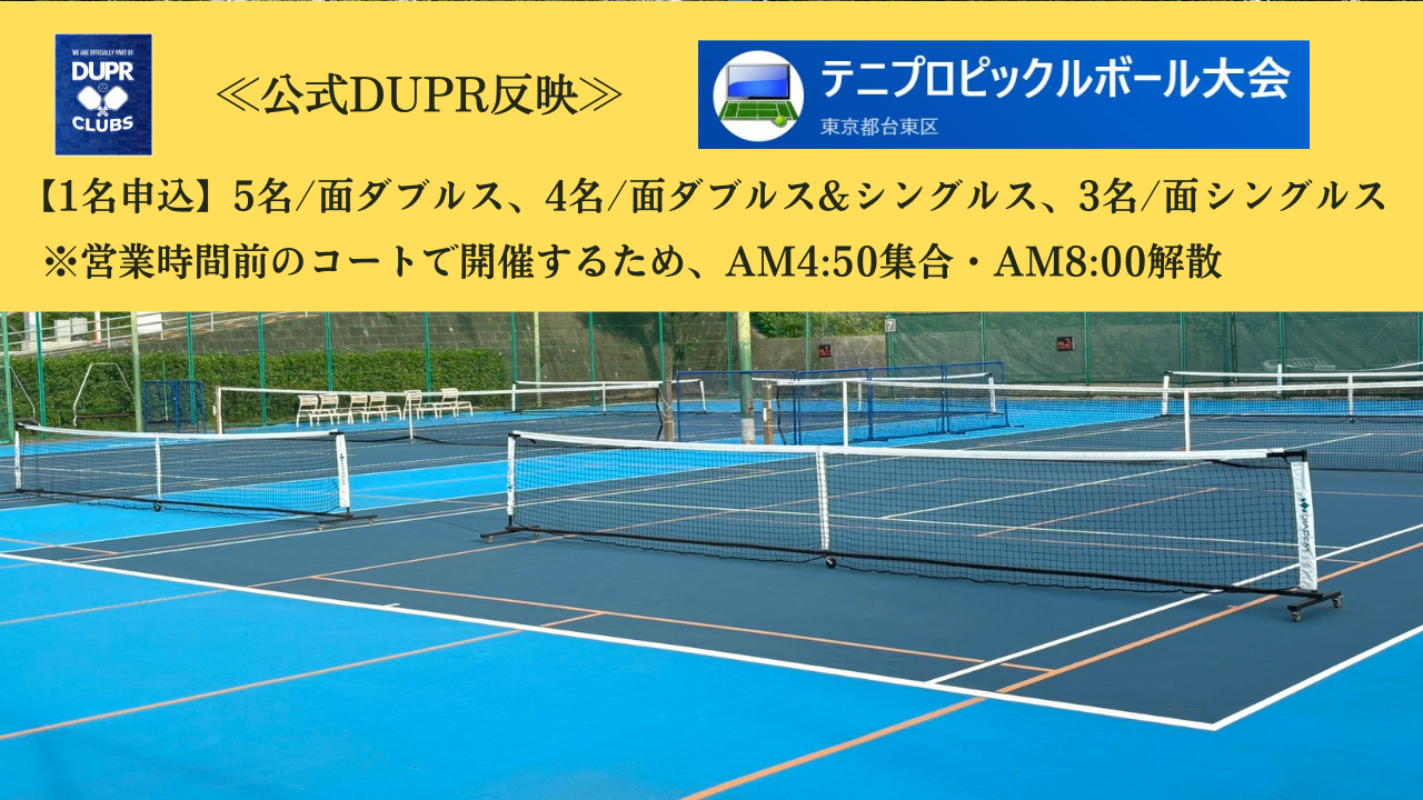 大会名 | ≪公式DUPR反映≫テニプロピックルボール大会【お一人申込】 |