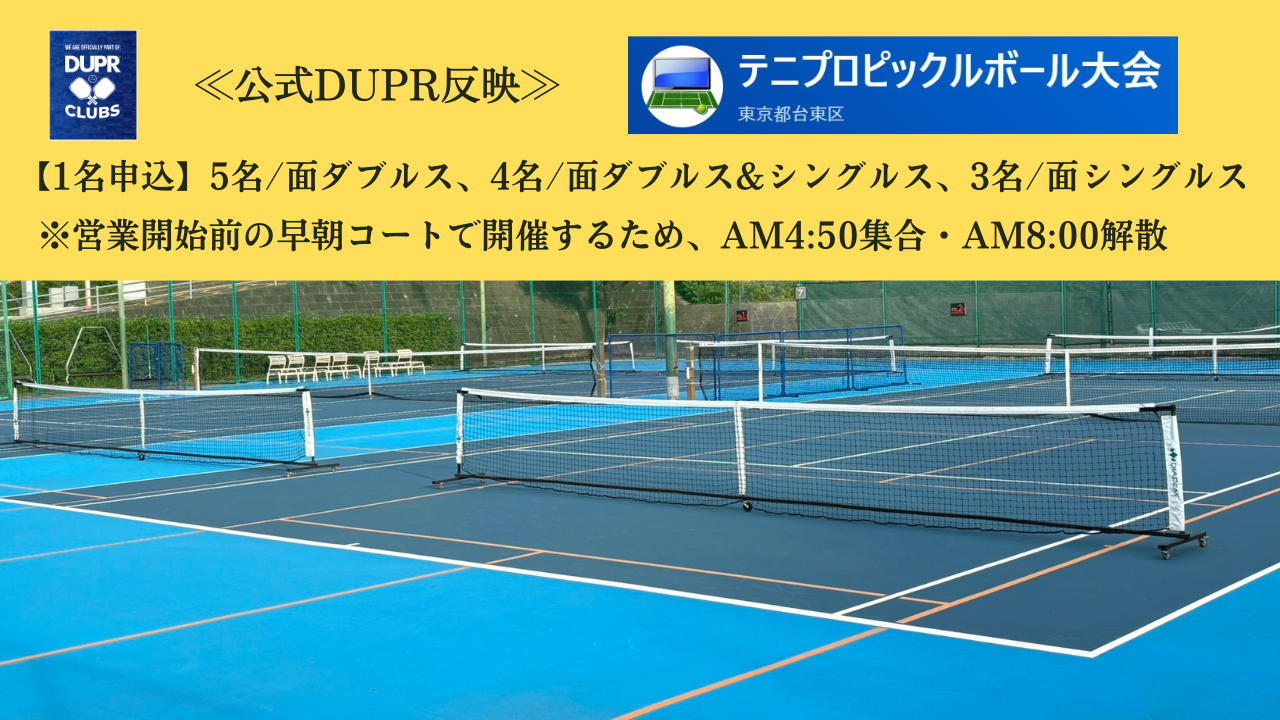 | 大会名 | テニプロ ピックルボール大会≪公式DUPR反映≫※1名申込み |
