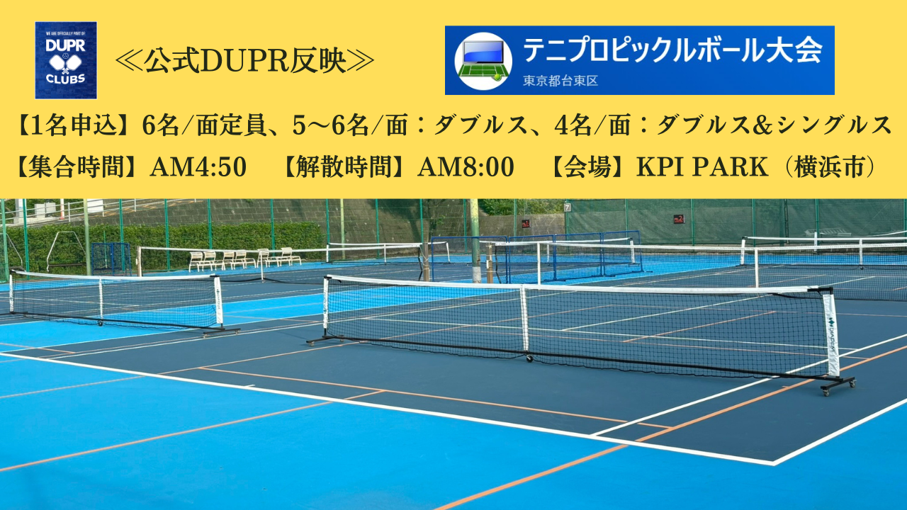 | 大会名 | テニプロ ピックルボール大会≪公式DUPR反映≫※1名申込み |