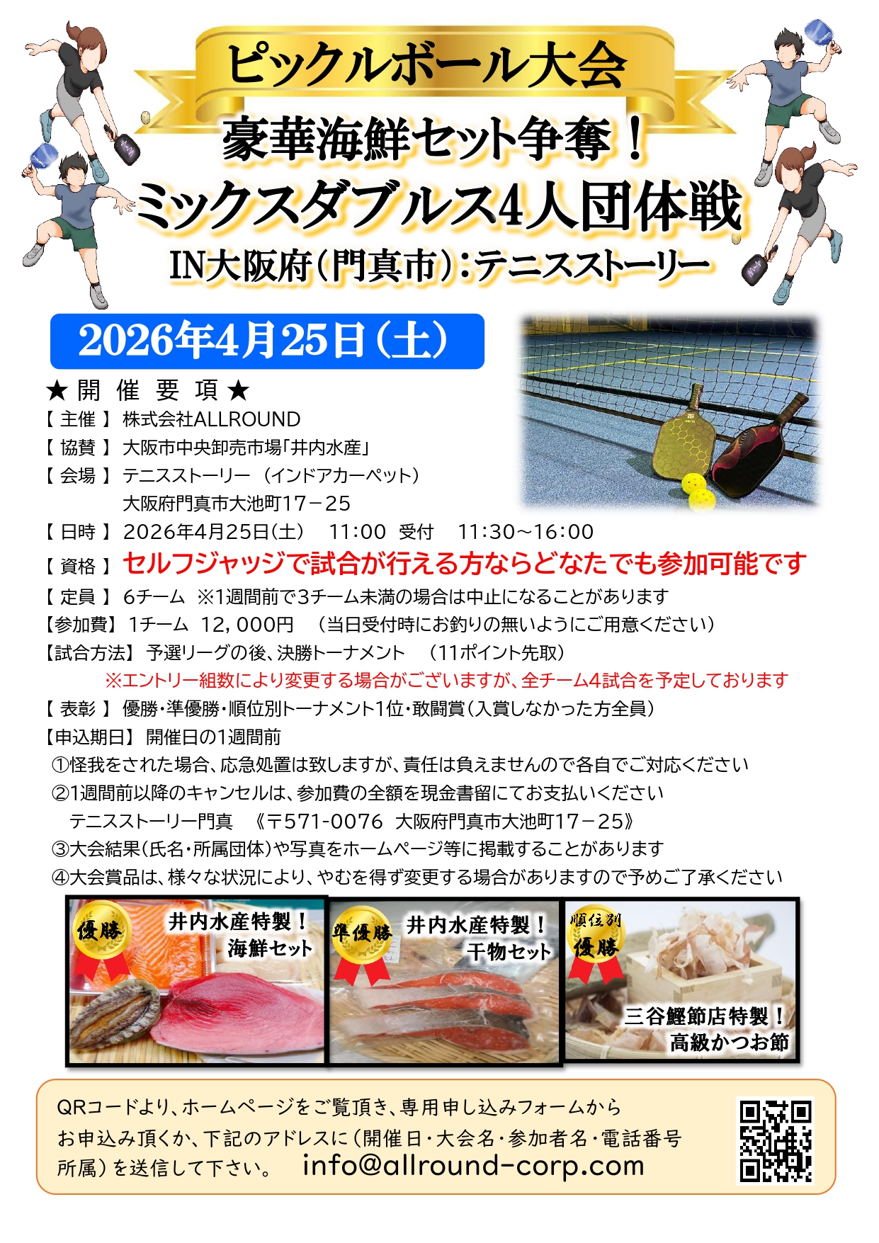 | 大会名 | 豪華海鮮セット争奪!ピックルボール大会 |