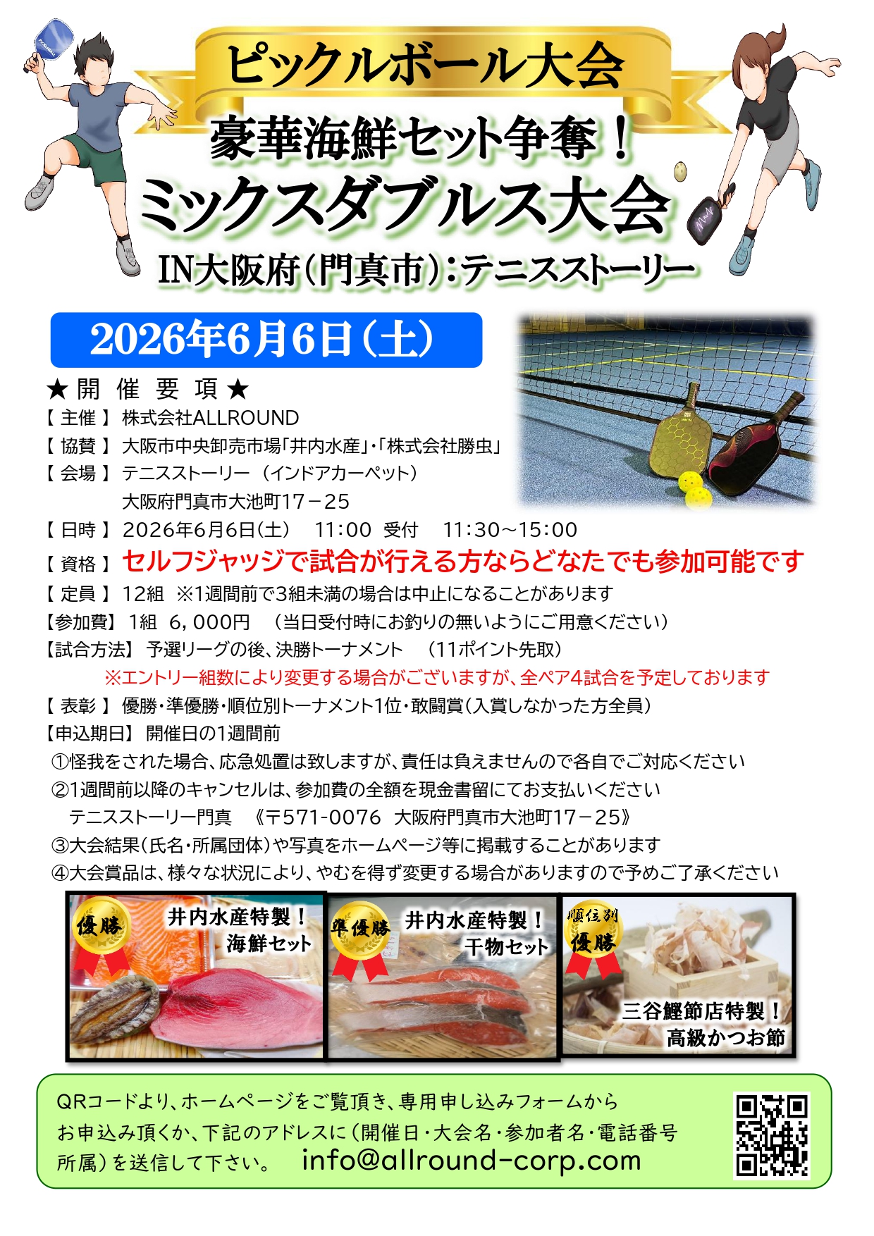| 大会名 | 豪華海鮮セット争奪!ピックルボール大会 |