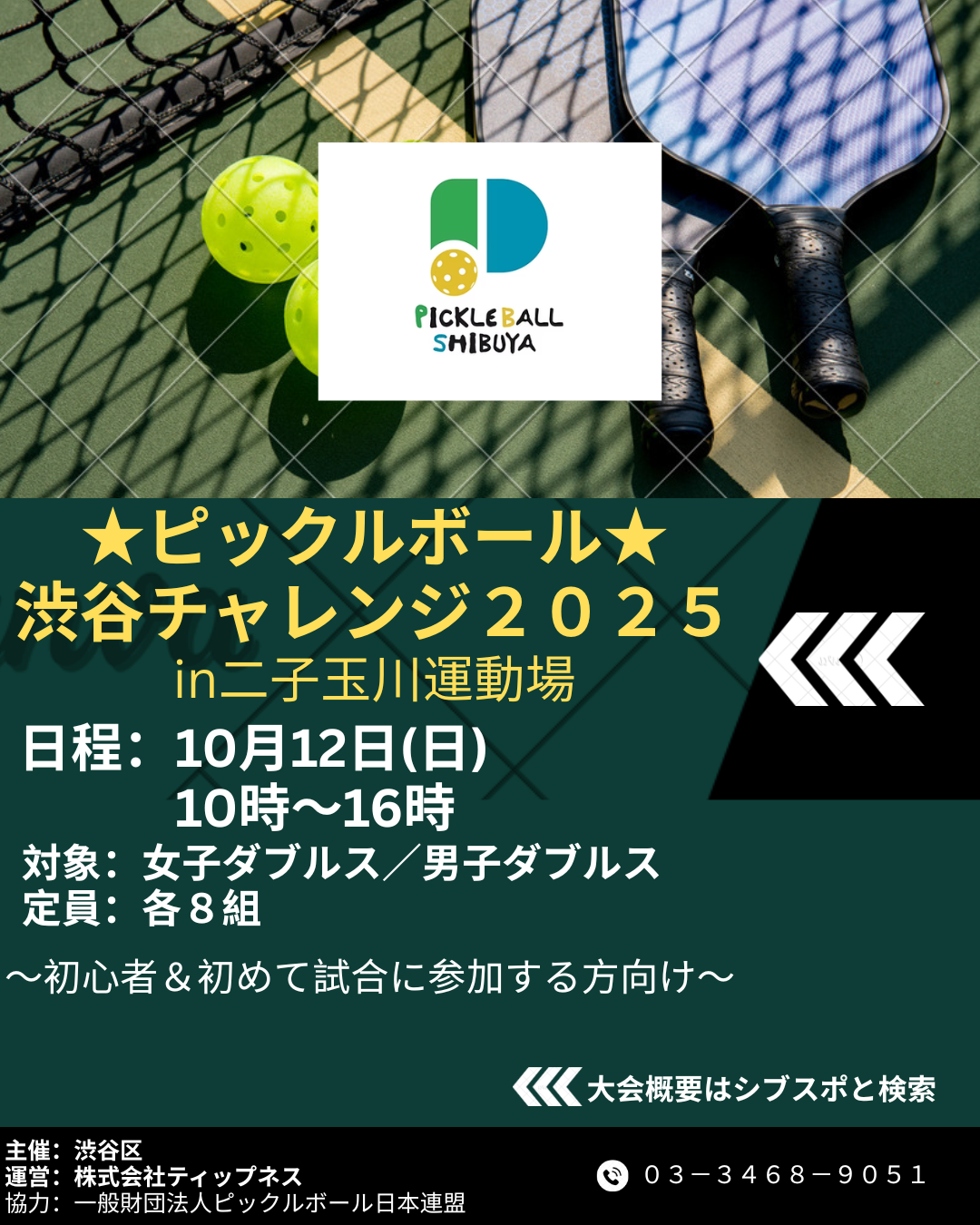 主催:渋谷区 運営:株式会社ティップネス 協力:ピックルボール日本連盟